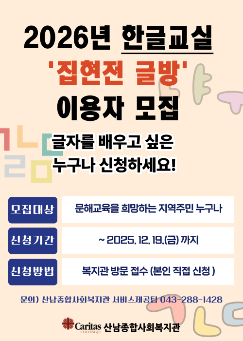 [강사모집 공고] 2026년 산남종합사회복지관 프로그램 강사 모집 공고