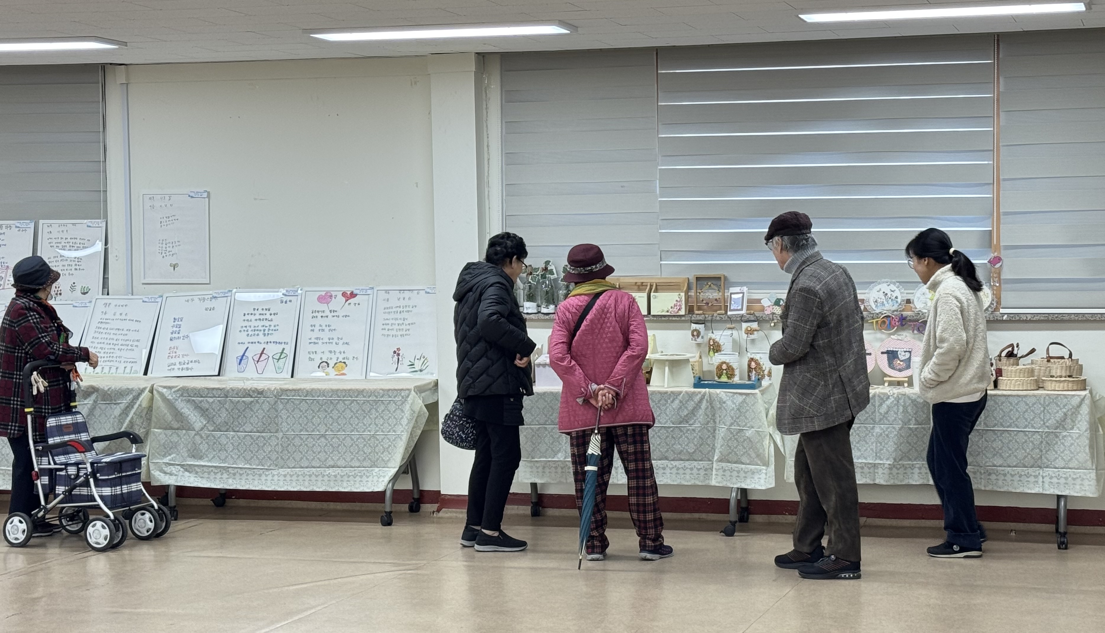 미술 작품, 시화전, 뜨개 작품 등 정성이 담긴 작품들이 전시되어