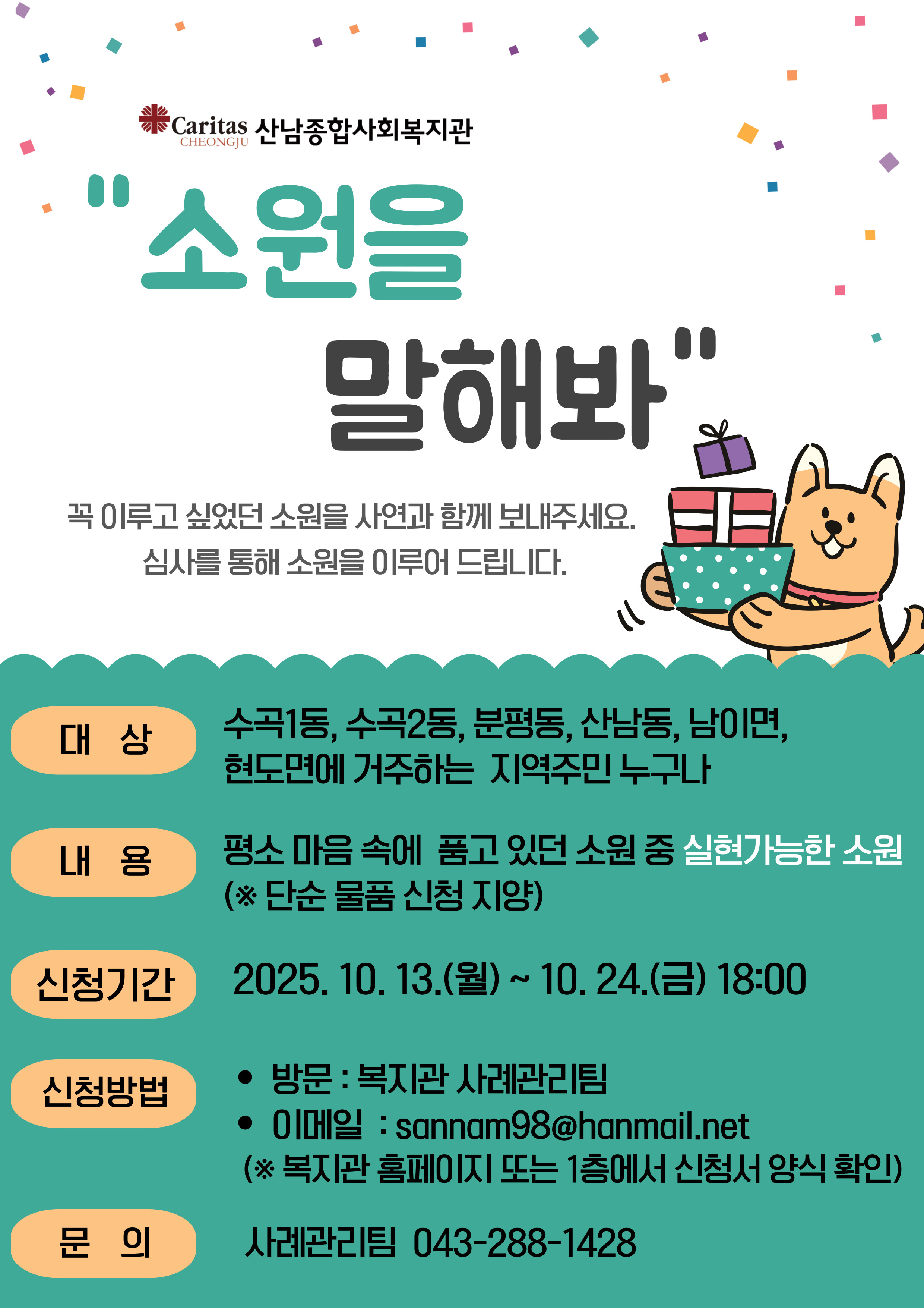 산남종합사회복지관에서 경제적 어려움으로 소원을 이루기 어려운 지역주민들의 바람을 지원하고자