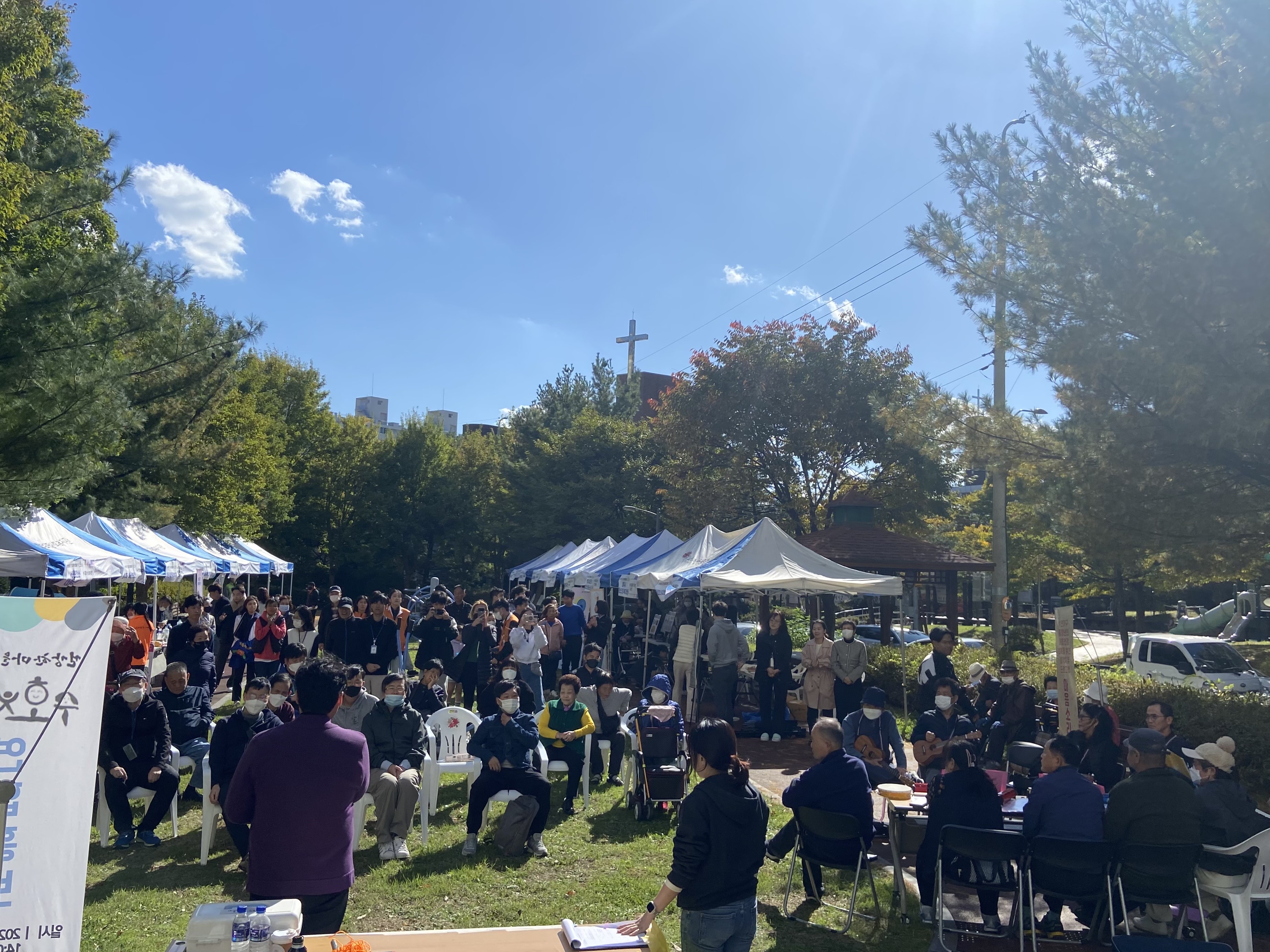 2023.10.20.(금) 에 산남2-2단지 체육공원에서 '지역네트워크 건강한마을만들기 수호천사 연합홍보'가 진행되었습니다.